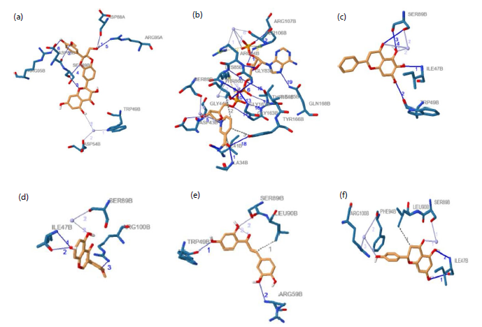 | Luteolin | ILE(47B), ARG(59B), SER(89B), ARG(100B) |